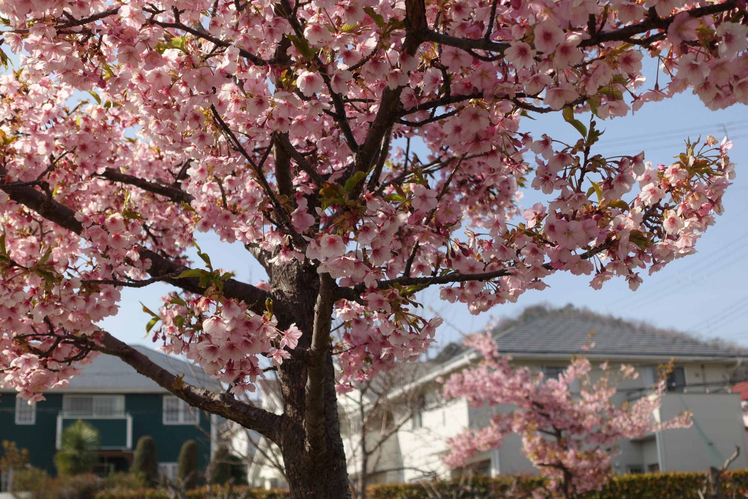 カワズザクラ(河津桜)が満開です 花木 X Facebook はてブ LINE コピー 2026.03.22 もうすぐ、サクラの開花が始まる次期、カワズザクラが満開となっています。 樹高は亜高木、樹形は傘状。一重咲きで4cmから5cmの大輪の花を咲かせ、花弁の色は紫紅。オオシマザクラとカンヒザクラの雑種にさらにカンヒザクラが交雑した種であり、オオシマザクラ由来の大輪の花と、カンヒザクラ由来の紫紅の花弁の色と早咲きが大きな特徴である。