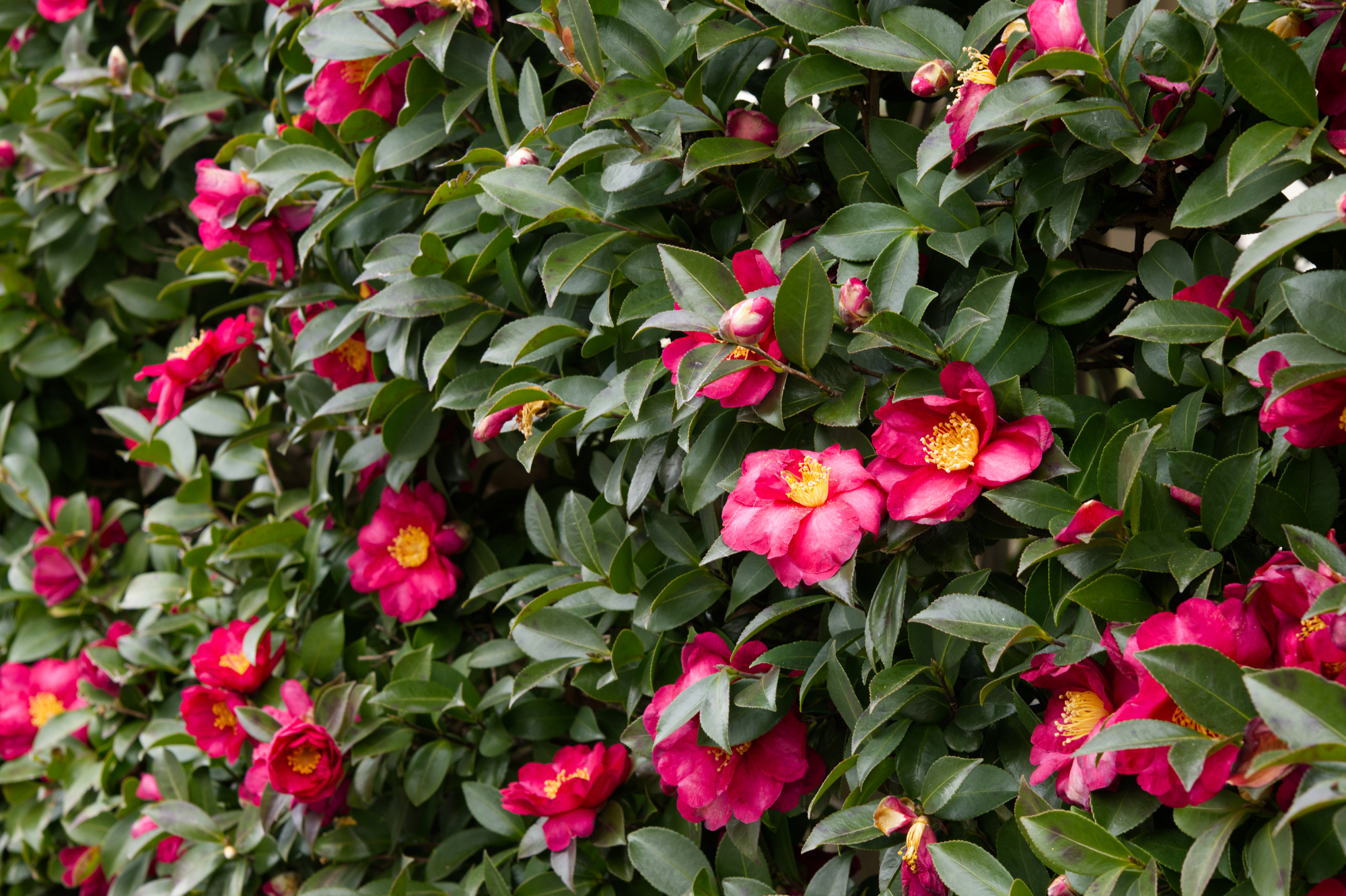 サザンカが満開でした 花木 X Facebook はてブ LINE コピー 2026.02.05 街路のサザンカが満開でした。 和名は中国語の椿を意味する山茶(shancha)に由来し、山茶花の読みのサンサカから転じたものといわれる。日本の固有種であり、自生種は白色花である。園芸品種は多数あり、中国などでも、広く栽培されています。
