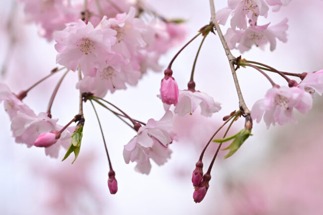 シダレザクラ(枝垂桜)も満開でした 未分類 X Facebook はてブ LINE コピー 2026.04.07 南禅寺から哲学の道に行く途中、シダレザクラが満開でした。 樹高は8 m以上に育つ高木、花は一重咲きの小輪で淡紅色、東京基準の花期は3月中旬である。枝垂れる以外の特徴はエドヒガンと同じで個体により変異がある。