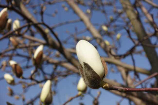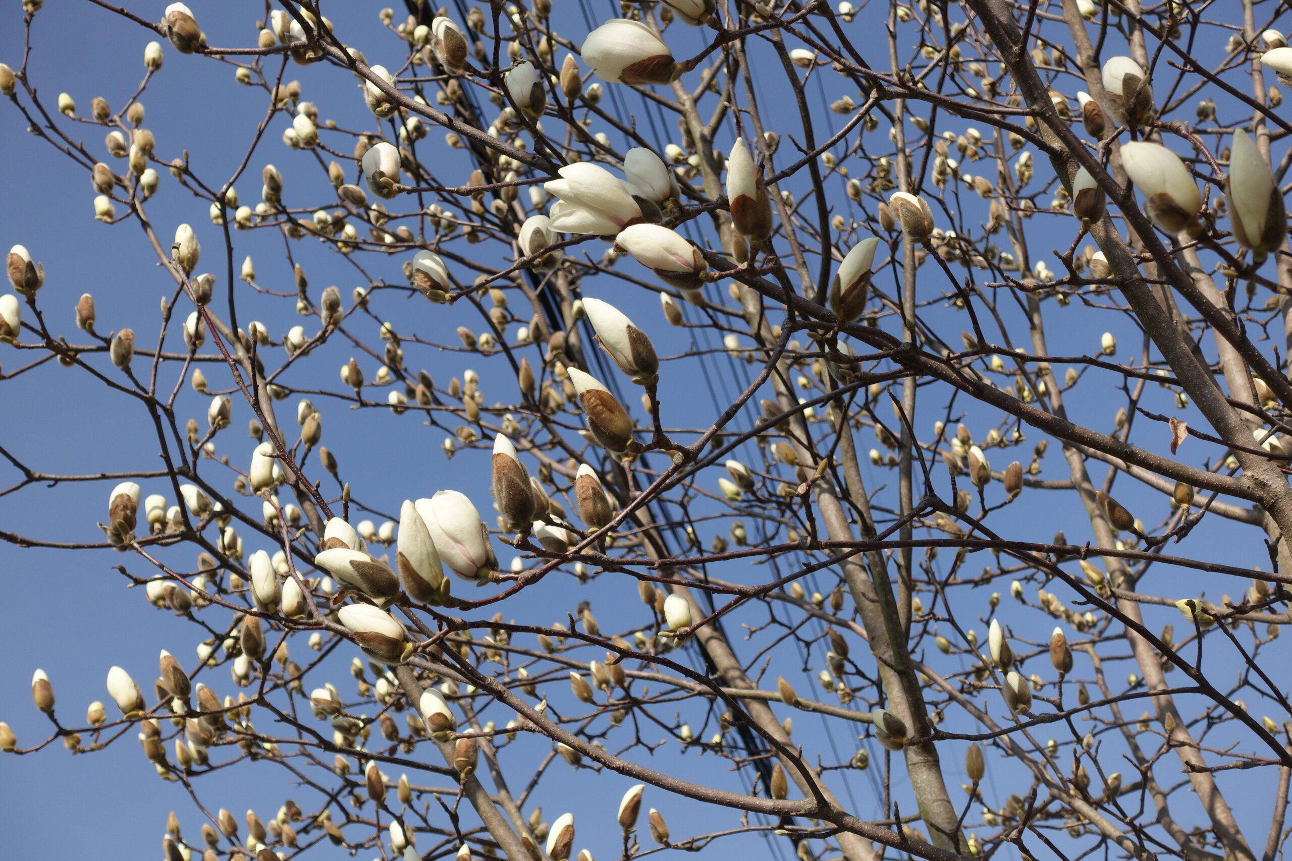 ハクモクレンも咲きだしました 花木 X Facebook はてブ LINE コピー 2026.03.22 ハクモクレンの花の蕾も膨らみだしました。 モクレン科モクレン属に属する落葉高木の1種である。早春の葉が展開する前に、白色の大きな花が上向きに咲く。コブシの花びらの枚数は6枚であるのに対して、ハクモクレンは9枚(花弁3枚+がく片6枚)ある。
